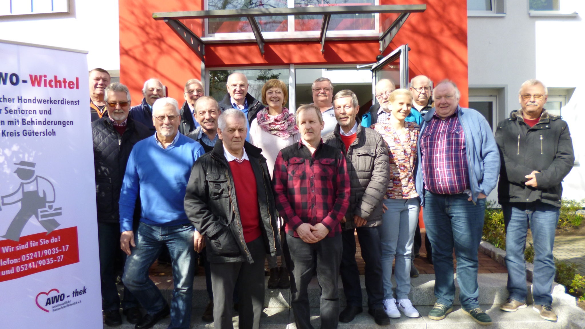 Wenn das Licht im Kühlschrank versagt oder der Wasserhahn tropft – die AWO Wichtel im Kreis Gütersloh sind stets zur Stelle.  Kreisweit sind mittlerweile über 40 AWO Wichtel in und um Gütersloh unterwegs. Sie helfen bei kleinen Reparaturen wie dem Wechseln einer Glühbirne, dem Entquietschen einer Schranktür oder wenn der Spiegel mal zu niedrig hängt. Zum gemeinsamen Austausch und den Start in das Wichteljahr 2017 trafen sich im AWO Kreisverband Gütersloh die Koordinatoren aus den verschiedenen Kommunen und Gemeinden. Es wurde von den unterschiedlichsten und manchmal auch kuriosen Fällen berichtet. So erzählte Manfred Herzog mit einem Augenzwinkern, dass in Schloß Holte er schon gebeten wurde eine komplette Wohnung zu tapezieren. „Dies kommt natürlich nicht in Frage,“  sagte er lachend, „aber ich konnte sicherlich einige gute Handwerker benennen.“  Die AWO Wichtel stammen aus den unterschiedlichsten Berufsgruppen  und bieten eine Vielfalt ihres Könnens. Immer bedacht, dass nur Kleinigkeiten behoben werden können und keine handwerklichen Großaufträge angenommen werden. Gegen eine Aufwandsentschädigung  von 10 Euro helfen die Wichtel gern. „Auch eine Tasse Kaffee wird nicht abgelehnt“, berichtet Kurt Picker von den AWO Wichteln Künsebeck, „so kommen wir noch tiefer ins Gespräch mit dem Ratsuchenden und können eventuell noch mehr helfen.“ Die Vermittlung der AWO – Wichtel ist in den Kommunen unterschiedlich geregelt, mal über die AWO Ortsvereine, Familienzentren oder dem Seniorenbeirat. Doch eines haben alle gemeinsam,  sie wollen helfen und mit Rat und Tat Älteren und Menschen mit Behinderung zur Seite stehen.