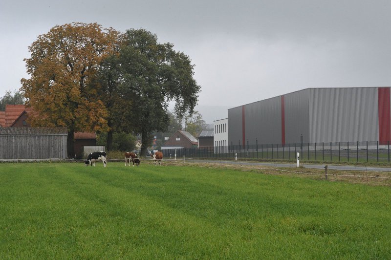 Ein ständiger Konflikt: Wieder prallen in diesen Tagen in Künsebeck die Interessen von Landwirtschaft und Industrie aufeinander. Was hier wie ein friedliches Nebeneinander aussieht, wird noch zu vielen politischen Auseinandersetzungen führen. – © Foto: Nicole Donath