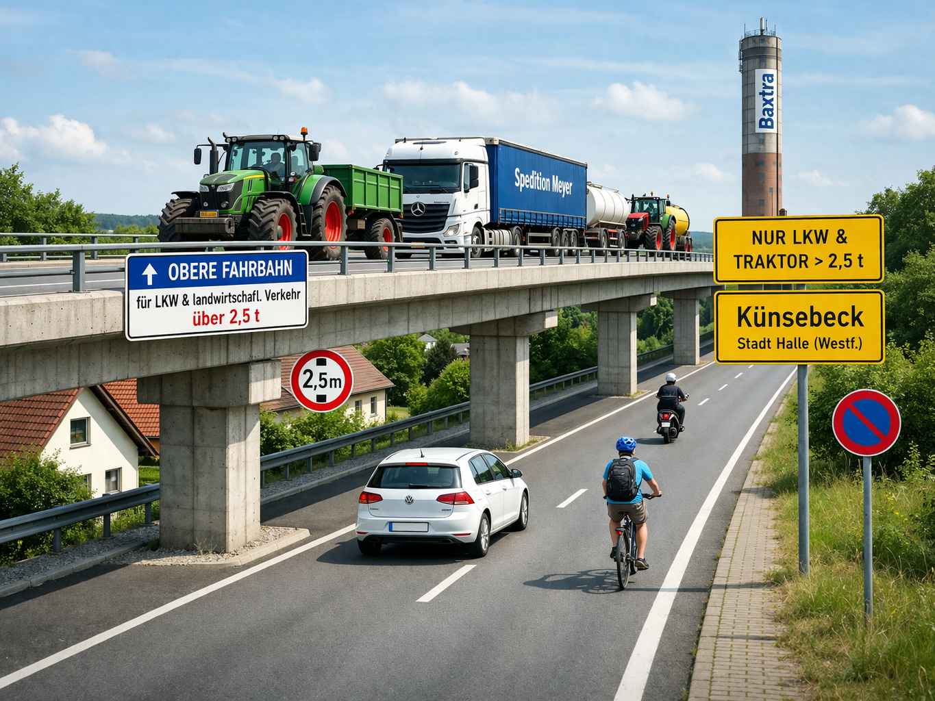 Die Stadtverwaltung spricht von einem „innovativen Pilotprojekt zur gerechten Aufteilung des Verkehrsraums“. Erste Stimmen aus Künsebeck reichen bereits von vorsichtiger Zustimmung bis zu der Frage, wie Trecker mit wenig PS künftig auf die obere Ebene gelangen sollen.