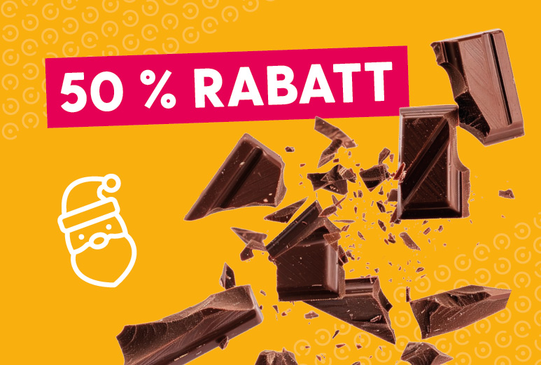 Egal in welcher Form: Schokolade schmeckt immer! Unsere Weihnachtsware bekommst du nun zum halben Preis. Wir geben dir 50 % Rabatt!