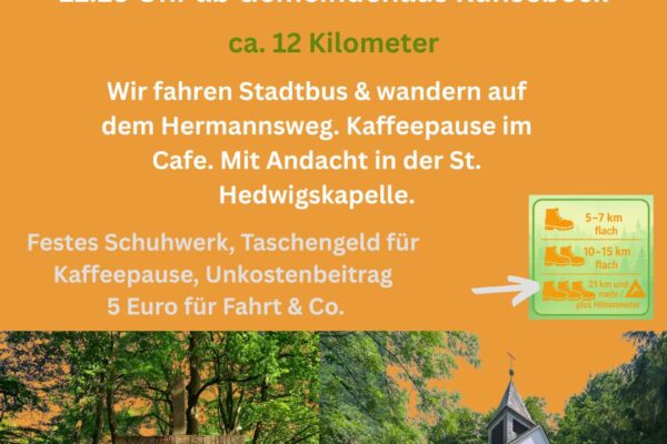 Sie wandern wieder: Die Wandervögel des Pfarrbezirks Künsebeck laden am 21. Dezember um 14:30 Uhr zur winterlichen Wanderung rund um den Hexenpatt ein. Start ist am Gemeindehaus Künsebeck. Die Route führt durch das Gebiet rund […]