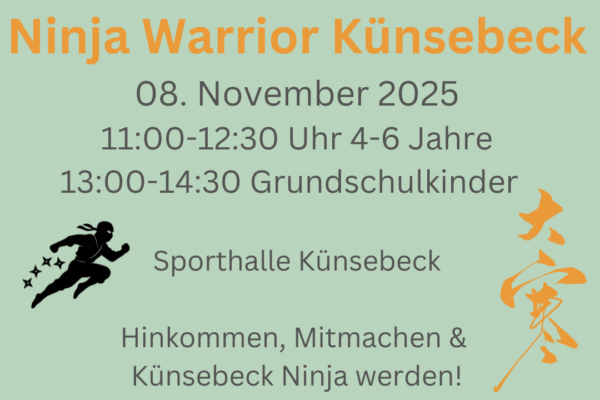 Am Samstag, den 8. November, verwandelt sich die Sporthalle der Grundschule Künsebeck in eine echte Ninja-Arena! Der TV Deutsche Eiche Künsebeck lädt alle sportbegeisterten Kinder zum Ninja-Training ein. Von 11:00 bis 12:30 Uhr dürfen sich […]