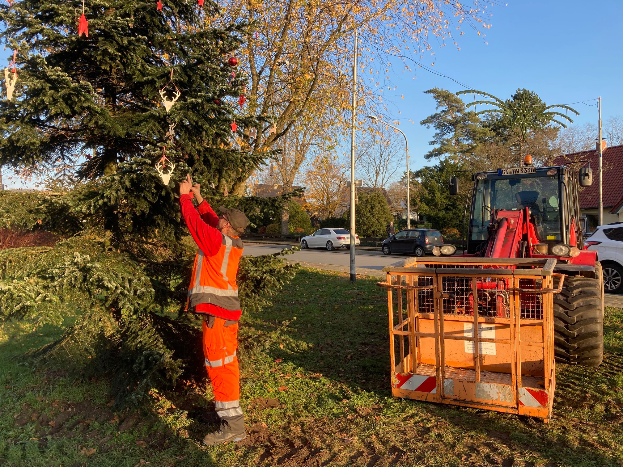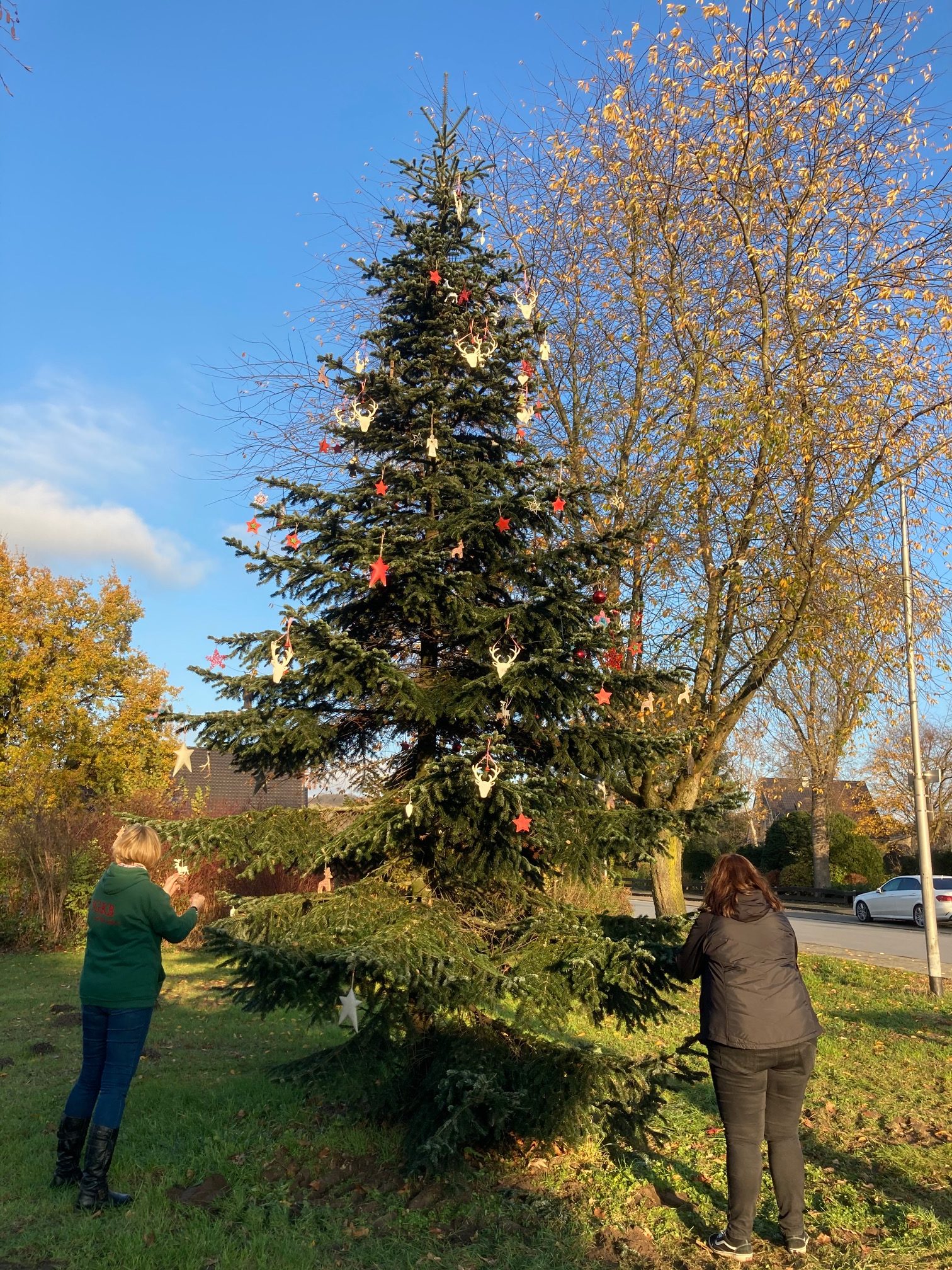 Dank der Hilfe des Bauhofes Halle, ging es heute für die IGKBler in luftige Höhen. Mit dem Hubsteiger wurden Kerstin und Freddy in die Luft gehoben und konnten somit den Künsker Weihnachtsbaum im oberen Bereich schmücken. Dazu gab es erstmalig auch Beleuchtung! Silke koordinierte das Geschehen sicher vom Boden. Ab Donnerstag kommen die Kindergärten und der Offene Ganztag um ihre selbstgebastelten Dekoartikel anzubringen. Dann wirds richtig adventlich im Dorf! Freut euch drauf!