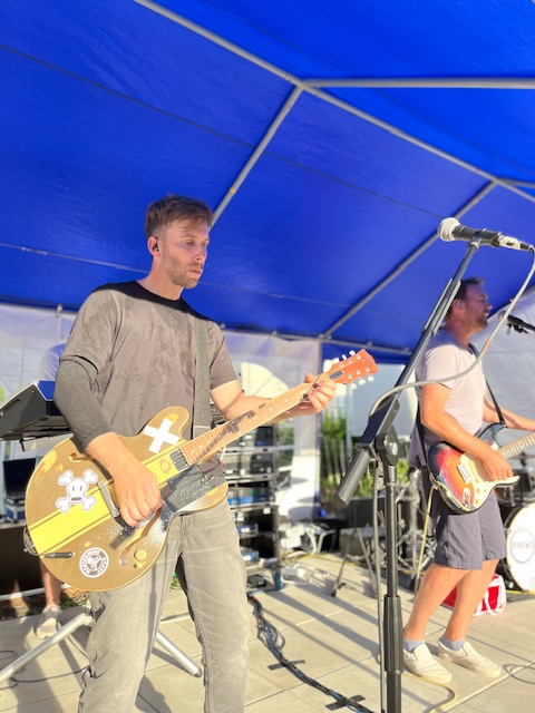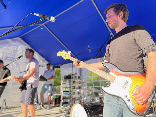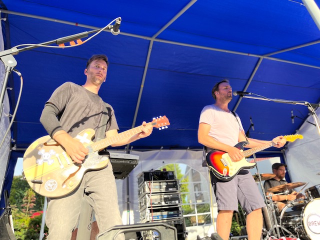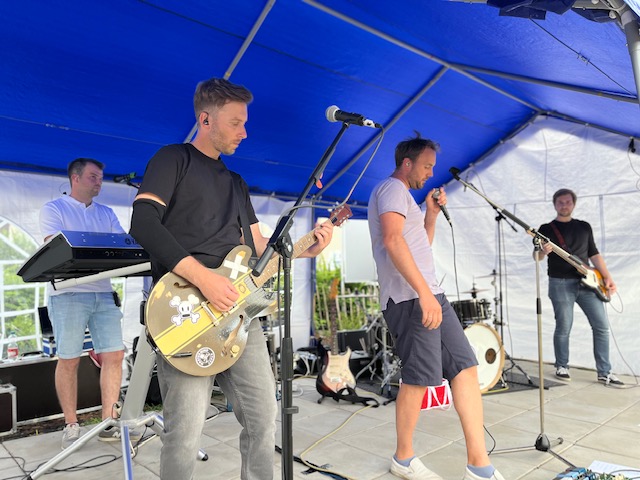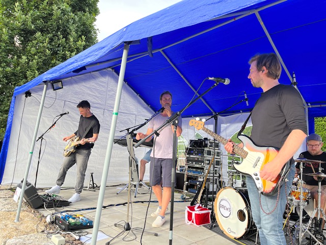 Die Hitzewelle rollte an und mit ihr die fünf Jungs von Brews. Im Kultursommer Künsebeck wurde es somit doppelt heiß am Dienstag! Der Parkplatz am Gemeindehaus war um Punkt 19 Uhr voll, allerdings nicht mit Autos, sondern mit Fahrrädern. Aus Künske und Umgebung radelten die Indie-Pop-Fans an, um zu den Beats der Musiker aus Künsebeck und Steinhagen abtanzen zu können. Seit 2011 sind die Künstler um Sänger Mike Wehmeier eine Band und proben gemeinsam. 2019 unter dem Namen Brews touren sie nun zusammen durch Ostwestfalen. Die Corona-Zeit haben sie sinnvoll genutzt. Sie schrieben neue Songs und erfanden ihre alten aus der Zeit seit 2011 noch einmal neu. In Künsebeck war es ihr erster öffentlicher Auftritt seit 2018, sozusagen eine kleine Premiere. Hier zeigten sie in einer Stunde den über 100 Besucher*innen tanzbare Beats mit eingängigen Gitarren-Riffs und Synthesizer Melodien. Damit die Gäste auch gut verköstigt wurden backte Veit Bockstede etliches Crepes und Jan Hegemann servierte frisch gegrillte Bratwurst. Nach dem Konzert fand so der Abend ruhig und bei bester Verpflegung und kalter Weinschorle den Ausklang. Und auch die Hitze verabschiedete sich…