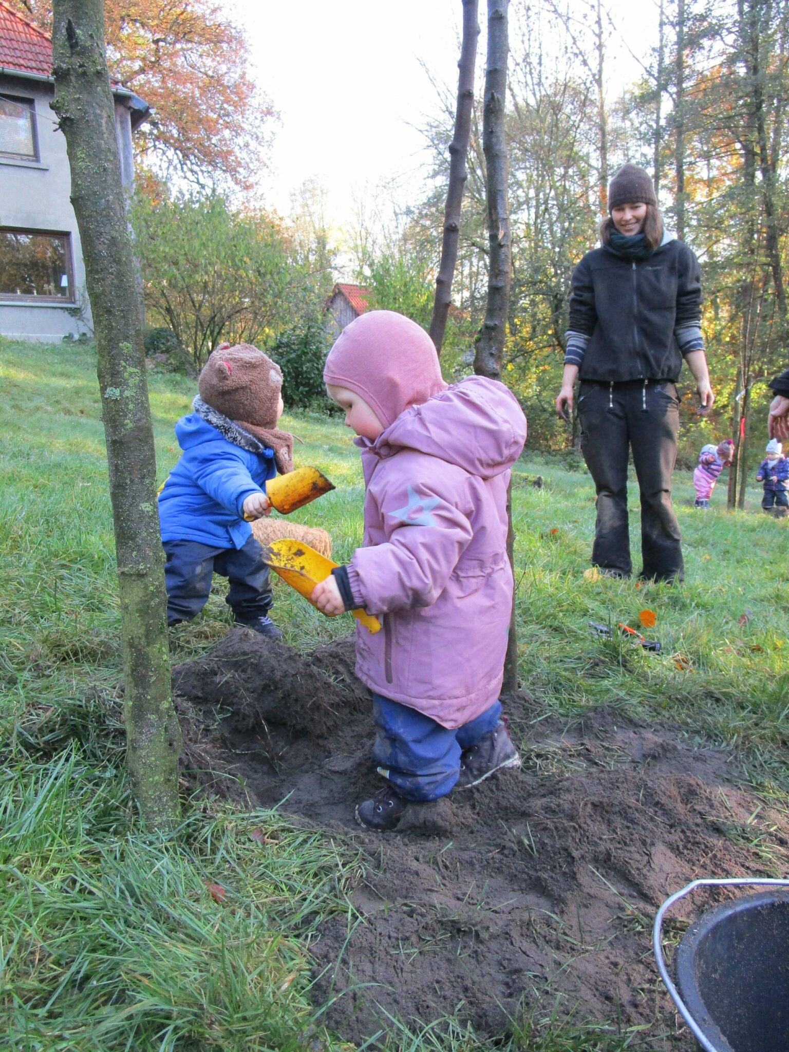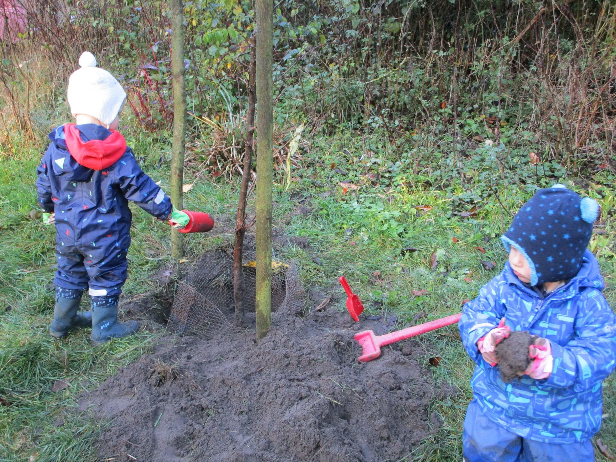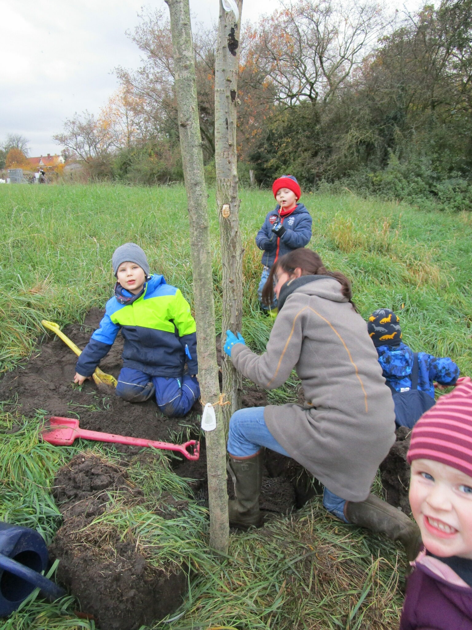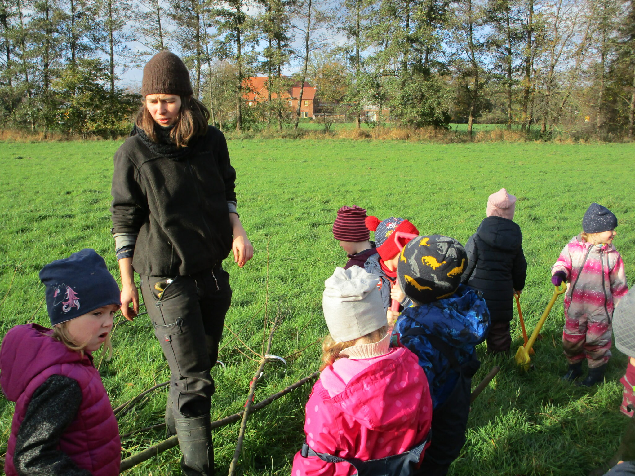 Aufgrund ihrer einzigartigen Struktur können Streuobstwiesen eine Oase für unterschiedliche Tier- und Pflanzenarten in der Agrarlandschaft darstellen und gleichzeitig das Klima schützen. Gefördert von der Stiftung Umwelt und Entwicklung, werden Beratungen und Informationen zur Pflanzung und Pflege ökologisch hochwertiger Streuobstwiesen angeboten. Im Mittelpunkt stehen außerdem der Austausch und die Vernetzung mit den Kindern der städt. Kindertagesstätte Künsebeck. DIese waren mit Buddelhosen und Gummistiefeln bewaffnet nach Bokel aufgebrochen, um an diesem nachhaltigen und wertvollen Projekt teilzunehmen. „Im kommeden Jahr“, so KiTa-Leiterin Anja Holle,“ werden wir wieder nach Bokel fahren und schauen was die Bäume so machen.“