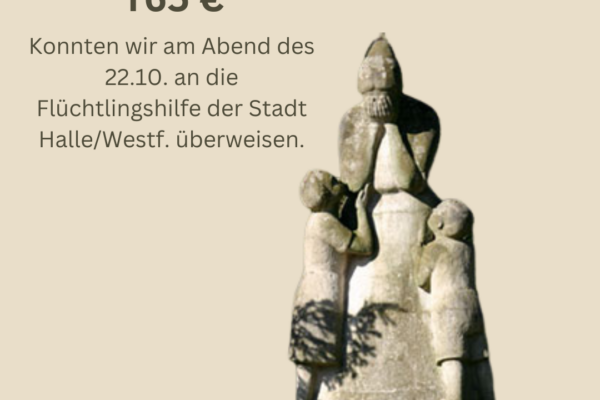 Am Samstag Abend sind unglaubliche 165 € als Spende für die Flüchtlingshilfe zusammen gekommen!