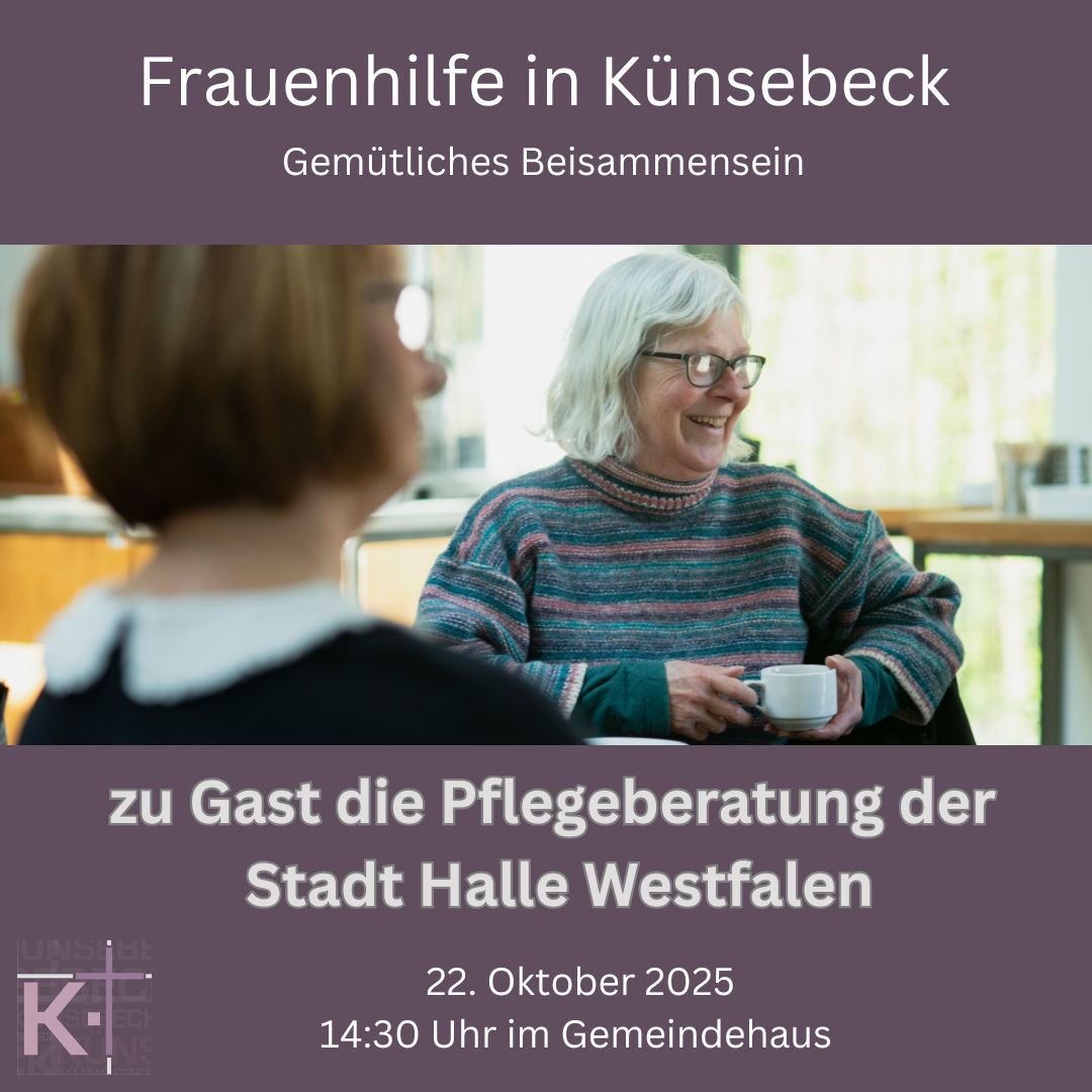 Bei Kaffee, Kuchen und guten Gesprächen traf sich die Frauenhilfe Künsebeck zu ihrem regelmäßigen Austausch. Dieses Mal bekam die Runde besonderen Besuch: Frau Waskow von der Pflegeberatung der Stadt Halle (Westf.) informierte über Unterstützungsangebote rund um das Thema „Älter werden“ und stand den Teilnehmerinnen für Fragen zur Verfügung. In lockerer Atmosphäre konnten Erfahrungen geteilt und wertvolle Tipps mitgenommen werden – ein gelungener Nachmittag voller Austausch und Information.