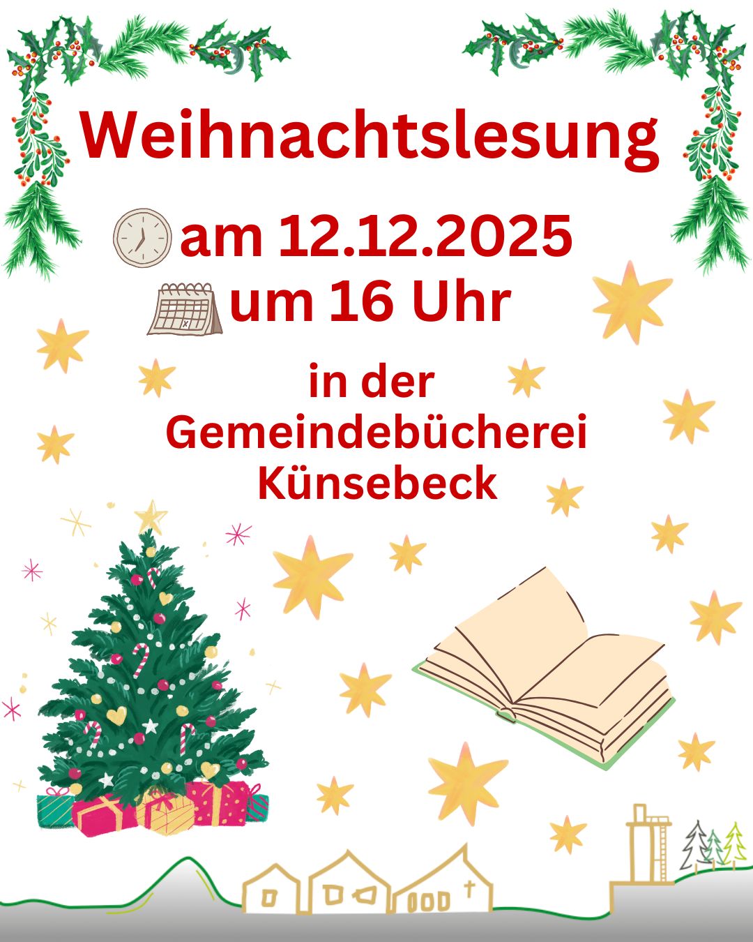 Am 12.12.2025 um 16 Uhr lädt die Gemeindebücherei Künsebeck herzlich zur Weihnachtslesung ein. In den gemütlichen Räumen der Bücherei in der Teutoburgerstraße 16, 33790 Halle (Künsebeck) erwartet euch eine tolle Weihnachtsgeschichte, die dank Beamer großformatig von allen betrachtet werden kann. Freut euch auf eine besinnliche Auszeit im Advent und ein gemeinsames Eintauchen in eine wundervolle Weihnachtswelt!