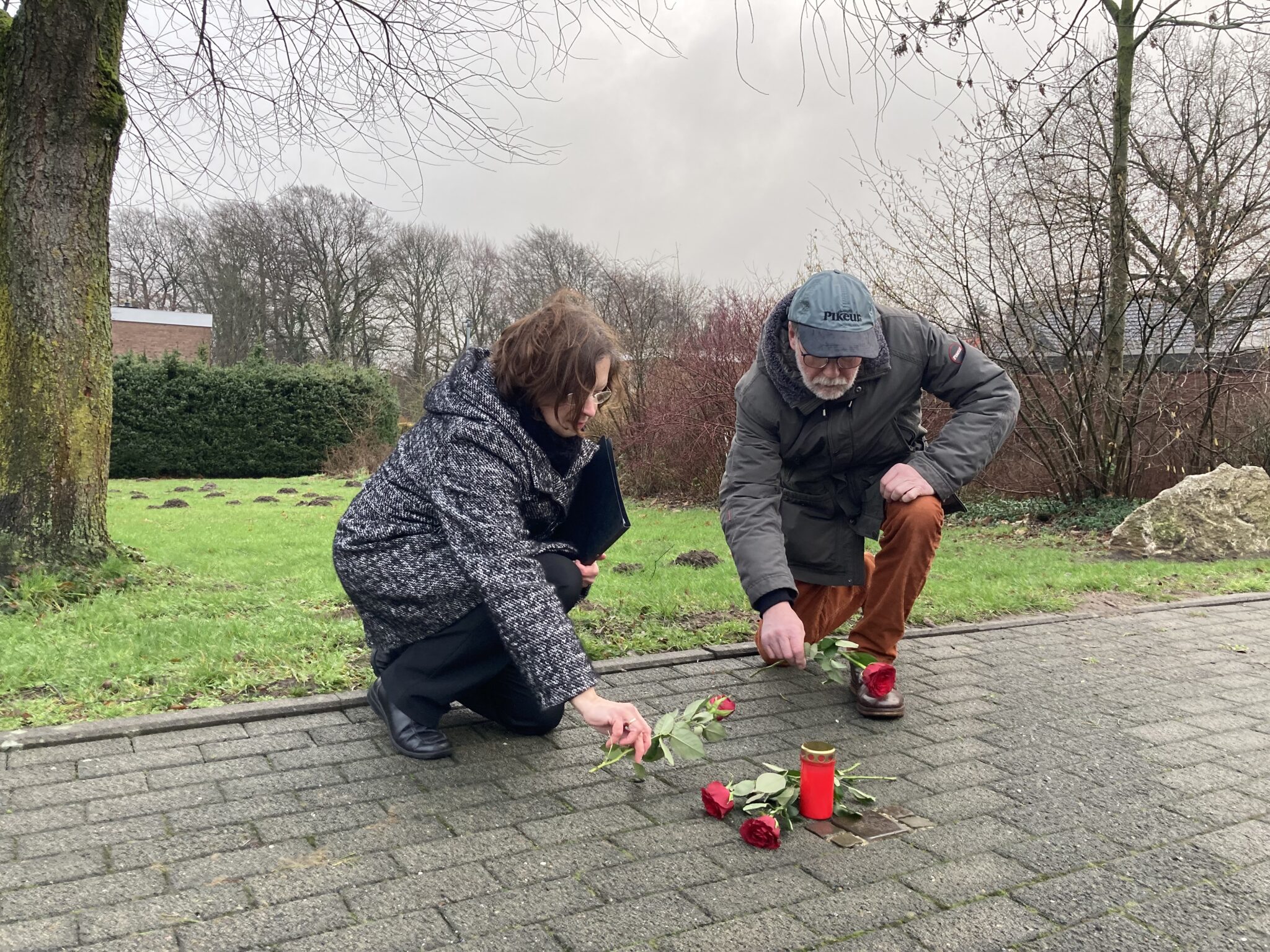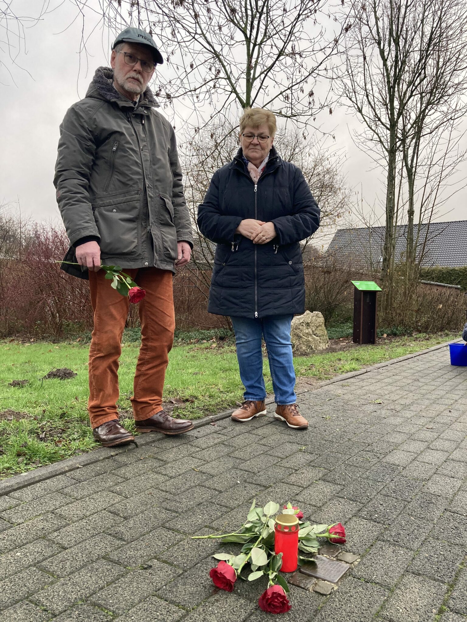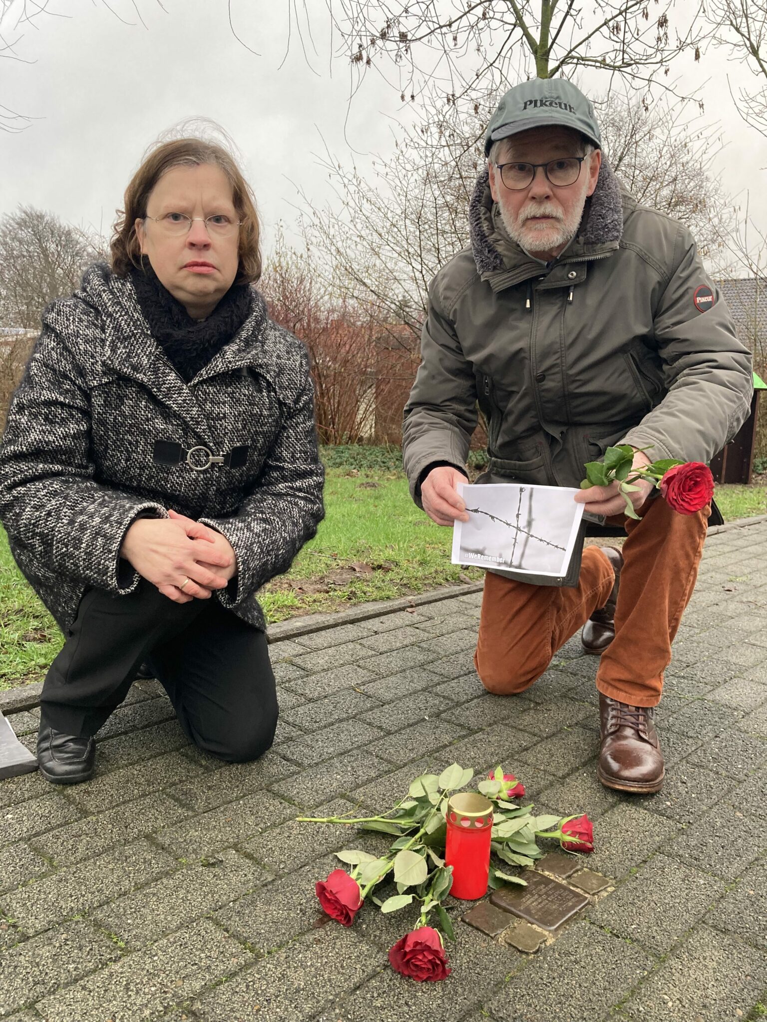 Zu Ehren Schalks (1906 – 1940) hielten die Künsebecker am Stolperstein an der Hauptstraße ihm zu Ehren auch am diesjährigen Gedenktag inne. Jörg Olaf Knufinke von der Interessengemeinschaft Künsebecker Bürger (IGKB) säuberten den gravierten Stein von der Erde des alltäglichen Treibens auf dem Bordstein.