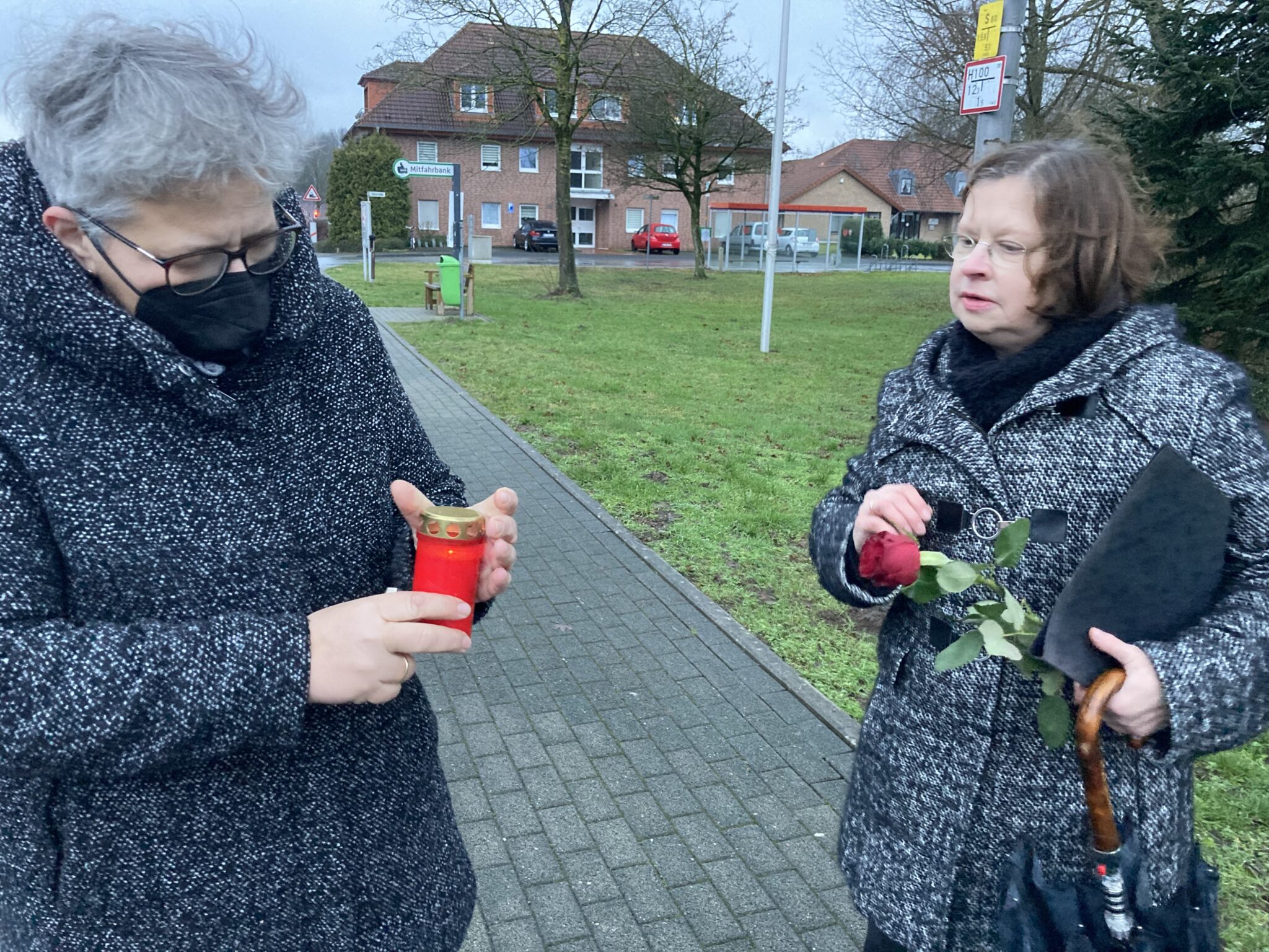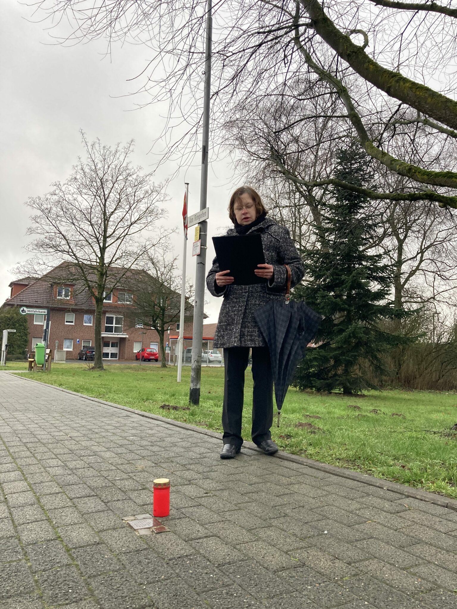 Gemeindepfarrerin Karin Hanke zündete im Gebet eine Kerze an, welche das kleine Licht der der Erinnerung nach Künsebeck brachte. Im Gebet und im Gedenken an Christian Schalk und unzählige Ermordete, Gefolterte und Verschleppte zur Zeit des Nationalsozialismus und bat um Wachsamkeit auch heute. Weiter erinnerte sie an Schalks Leben, seinen Widerstand und an die vielen Menschen, die Opfer des Nationalsozialimus wurden. „Dies dürfen wir nie vergessen und niemals mehr zu lassen“, so Jörg Knufinke abschließend.
