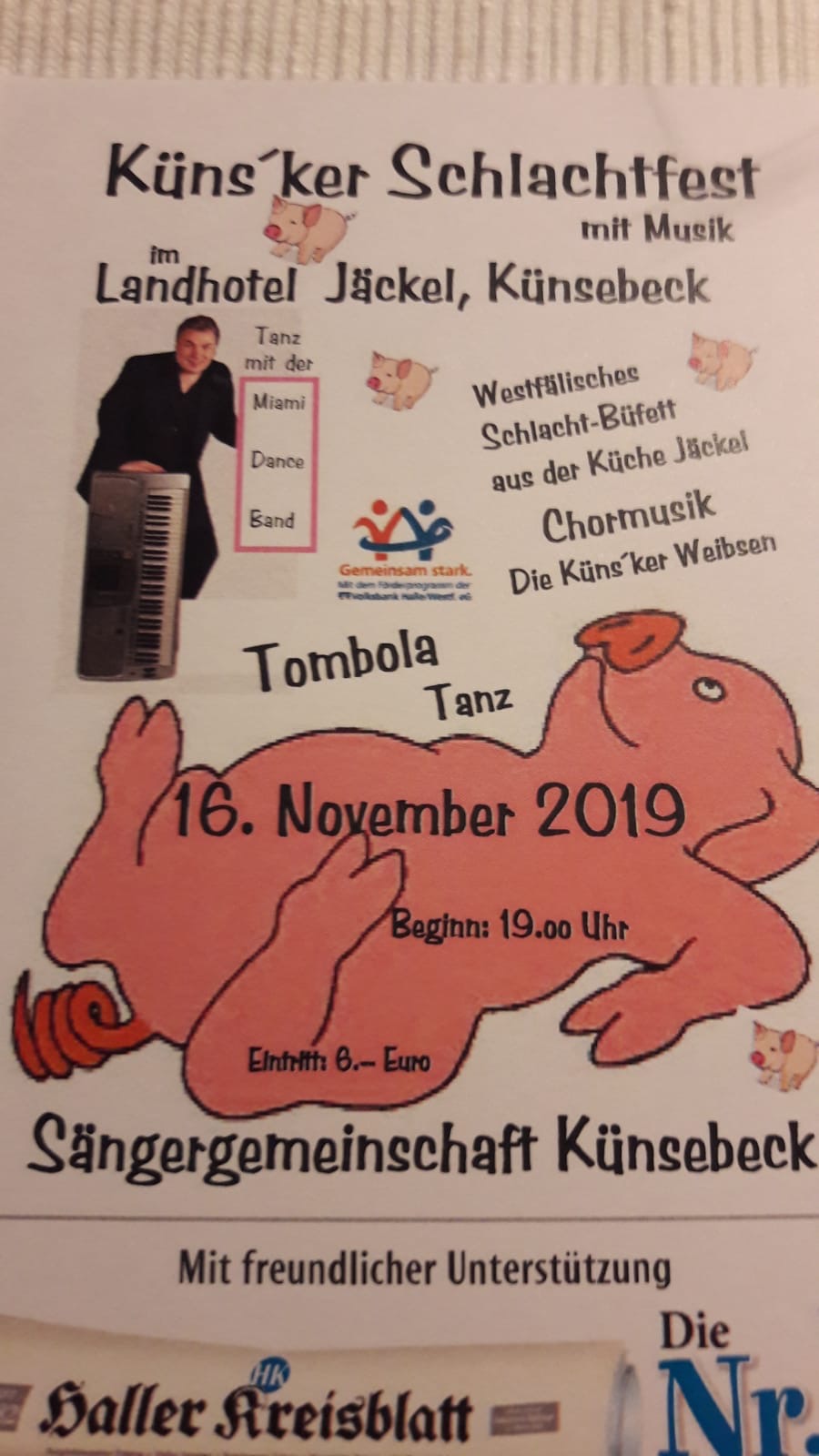 Herzliche Einaldung der Sängergemeinschaft, 16. Oktober 2019 ab 19 Uhr im Landhotel Jäckel. Mit Tanz, gutem Essen und jeder Menge Spaß!